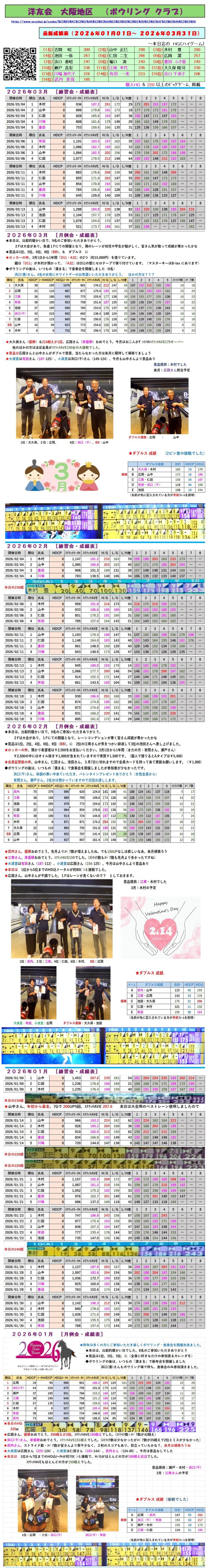 ボウリングクラブ 「令和8年3月の成績表」を掲載しました。